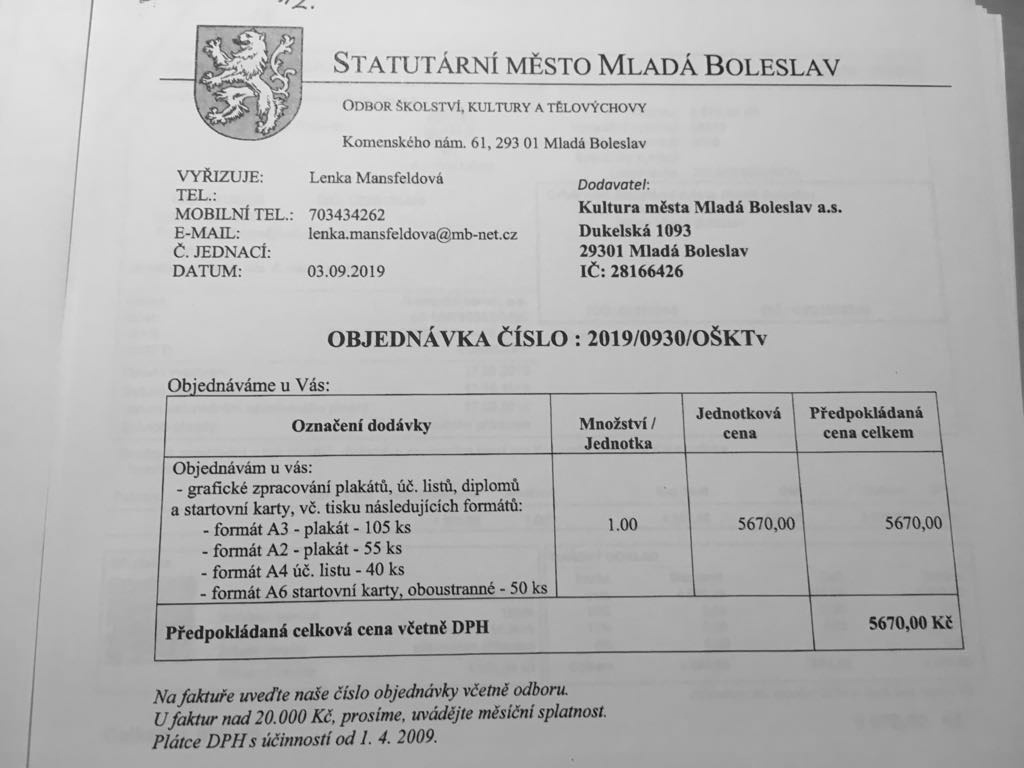 - Některé objednávky byly vystaveny až po ukončení her, které probíhaly 15. – 19.9.2019. Město uznalo chybu a dodatečně sjednalo nápravu.