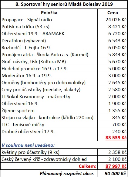 Z proúčtované sumy 87 837 Kč bylo na odměnu vítěznému seniorovi (1. místo) vynaloženo maximálně 325 Kč: květina v hodnotě 262 Kč, medaile v hodnotě 45 Kč, stuha na medaili v hodnotě 6 Kč, diplom v hodnotě 12,50 Kč. Za 2. a případné 3. místo již senioři dostali ocenění v hodnotě pouhých 63,50 Kč. Pro srovnání: odměna moderátorovi byla za 3,5 hod ve výši 3 000 Kč, tj. 857 Kč/hod, odměna rozhodčího za 1 den her byla 6 050 Kč. Nejvyšší částka byla vyčleněna na propagaci v Rádiu Signál, a to ve výši 24 025 Kč.