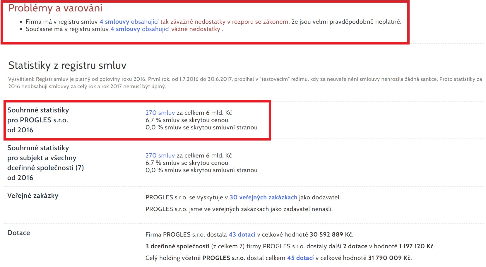 Údaje k firmě Progles s.r.o. z Hlídačstátu.cz