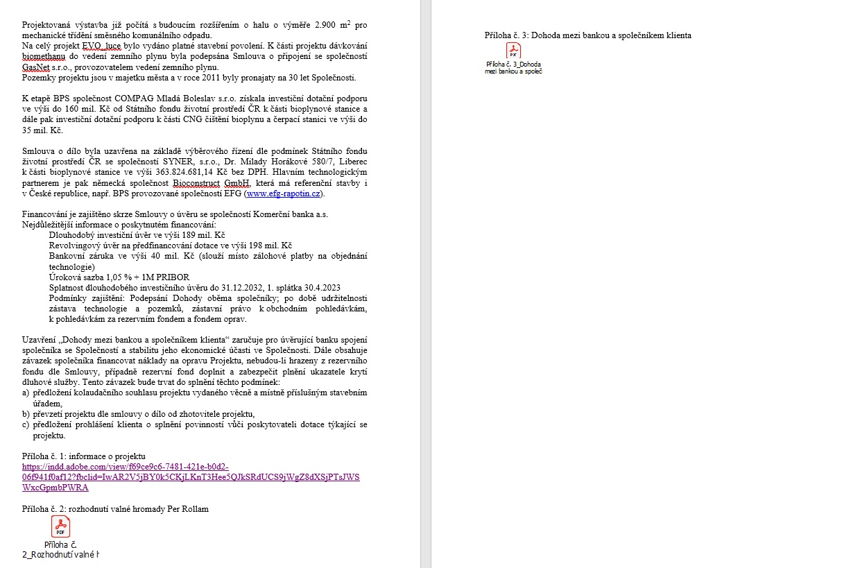Před jednáním zastupitelstva měli zastupitelé v podkladech možnost najít prezentaci Compagu k bioplynce, kde však dost zásadních informací chybělo: