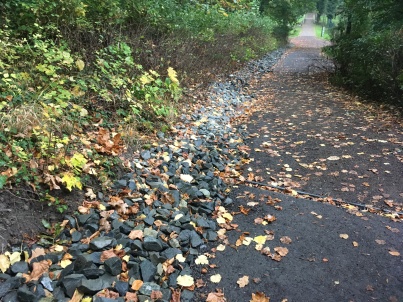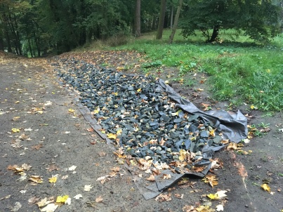 Vodou vymleté pěšiny nespravíme navezením nebezpečného kamení obřích rozměrů, o nebezpečí pádu suchých větví či celých stromů nemluvě. Nepořádek mimo hlavní cesty dokresluje obrázek o péči o zelené srdce města…